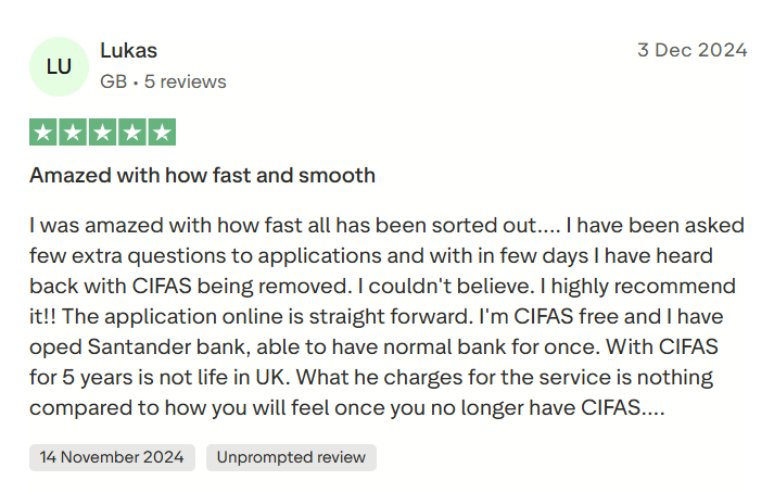 To my surprise, I received an email 3 days letter confirming that my CIFAS marker had been removed and I was extremely happy and relieved that the marker was removed so quickly.